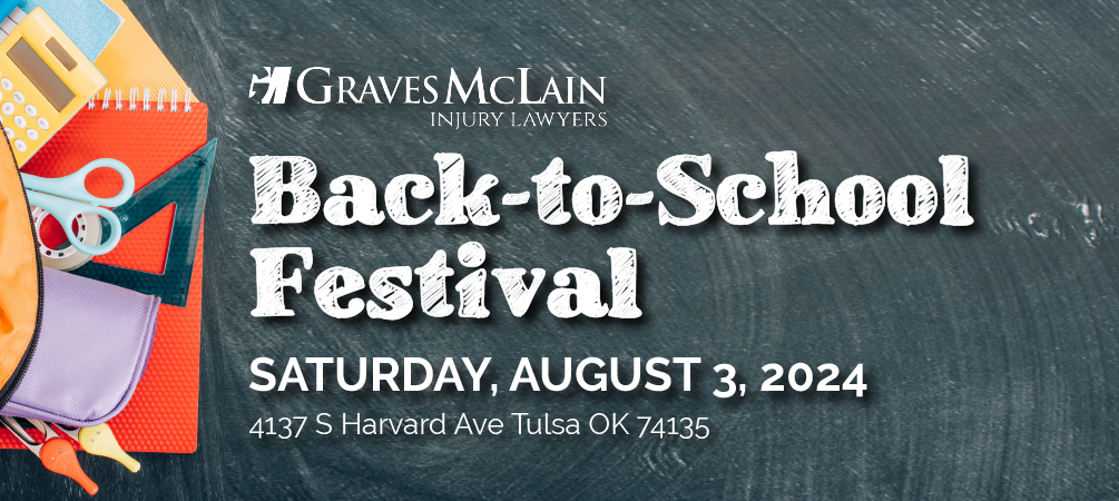 The Graves McLain Injury Lawyers 2024 Back-to-School Festival is part of the Firm’s ongoing commitment to the Tulsa Community we serve. Our goal is to help alleviate the financial burden often associated with the back-to-school season by offering complimentary school supplies, backpacks, and other resources to school-aged children in need throughout the greater Tulsa area. Through partnerships with valued local organizations and businesses, the Festival also fosters collaborative opportunities in support of a common community cause.